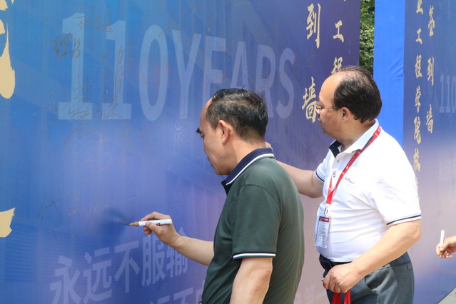 座谈会前,校友们先后到学院楼前的签名墙一起合影留念,参加了庆祝学校建校110周年文艺晚会和创新发展大会。座谈会后,校友们和学院全体院领导、教师代表在矿业学院楼门前共同合影留念。
