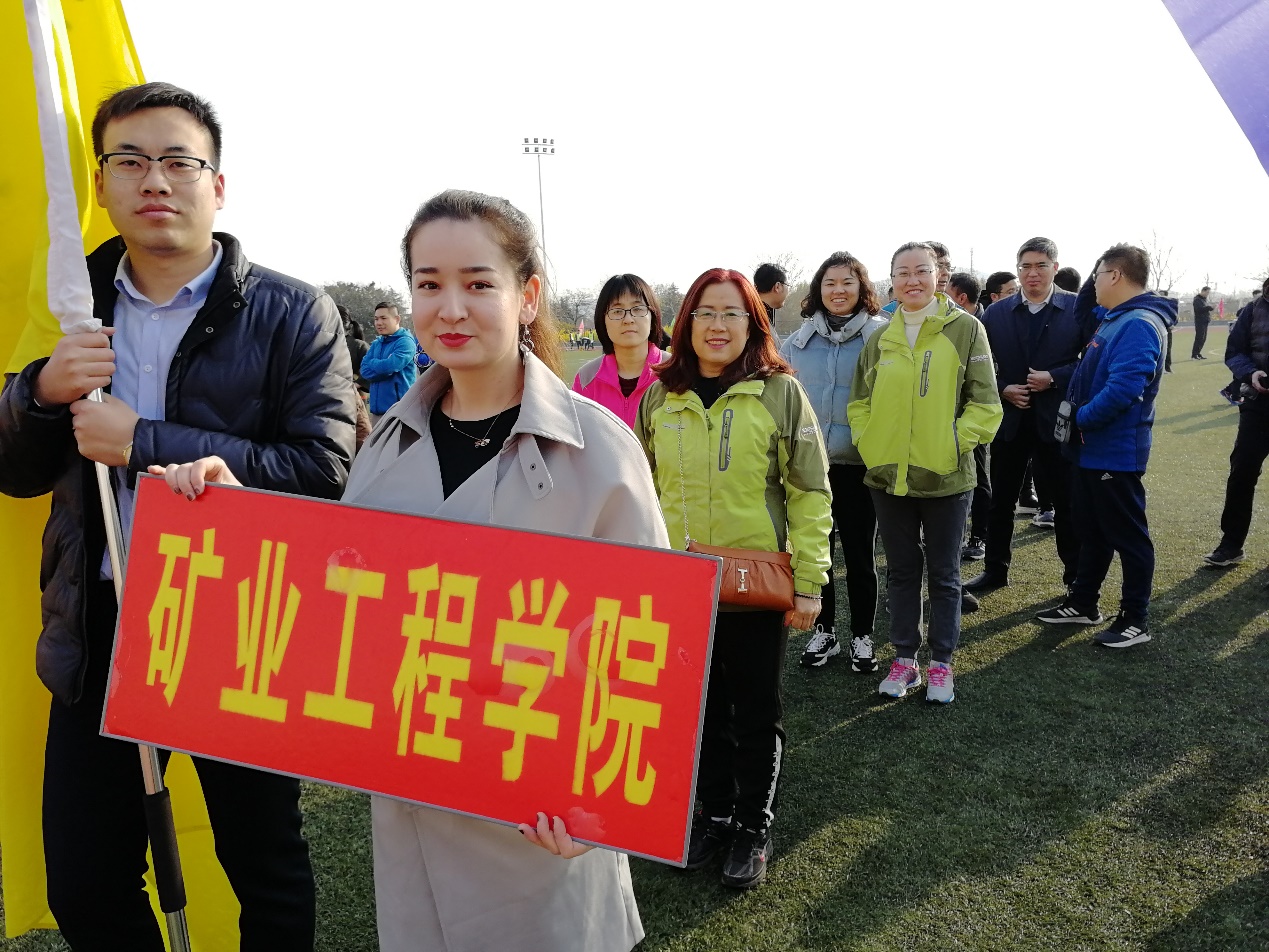 矿业学院教职工代表精神抖擞,跃跃欲试,纷纷报名一试身手。一路前奔的“疯狂履带”,蹦蹦跳跳的“单腿火车”,快速传递的“海底穿月”让大家意犹未尽,后面的节目更是让老师们兴奋不已,“摸石头过河”的身手矫健,“两人顶球跑”的默契配合,“星球大挪移”的左支右绌,“毛毛虫”的俏皮可爱,“雷霆战鼓”的铿锵鼓点, “蛟龙出海”的整齐划一,老师们兴奋参赛的同时,也不忘总结经验,互相鼓劲。整个赛场洋溢着笑声、鼓掌声和加油声,春天的运动场变成了欢声笑语的海洋。
