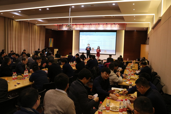 2019年迎新春联欢会在矿业楼A604报告厅举行。矿业学院党委书记陈新忠、院长张吉雄等学院领导班子和全院教职工欢聚一堂,共同迎接新的钟声、新的一年、新的祝福、新的期待。