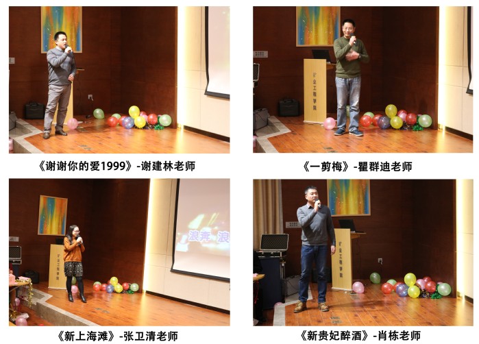 联欢会节目精彩纷呈,矿业学院的老男孩F5组合的歌曲串烧让大家明白了即使青春不在,但梦想始终不会褪色,始终焕发出耀眼光彩。歌曲《远走高飞》传递了生活不止眼前的苟且,还有诗和远方,人生需要按部就班的安稳,也需要说走就走的勇气。改编自爆红网络神曲的《采矿版沙漠骆驼》唱出了历代矿业人的精神财富-“三永远精神”。歌曲《红旗飘飘》在歌者的自白中流露出了对伟大祖国的热爱。歌曲《怀念战友》带台下观众领略了新疆塔吉克的民族风情。北京小曲《探清水河》带观众回味了老北京的爱情故事。歌曲《像我这样的人》表达了追梦路上的坚定与执着。歌曲《谢谢你的爱1999》让观众体会了现代人与人之间如同孤岛,情爱淡薄,惯于匆匆。歌曲《新贵妃醉酒》曲韵悠扬,让人耳目一新。歌曲《新上海滩》演绎了民国时代激昂的英雄豪情与那段动人的爱恨情仇。歌曲《一剪梅》让观众陶醉于北国风光、痴情于傲立寒梅。