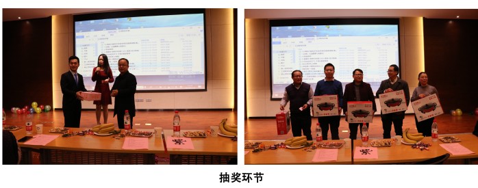 在互动环节中,你说口令我反转、萝卜蹲等游戏让台上台下互动频繁,融为一体。在抽奖环节中,学院各位领导和平台负责人以现场抽奖的方式向教职工生赠送了新年贺岁大礼包,调动了全场观众的互动激情。游戏环节和抽奖环节将现场气氛推向了高潮。