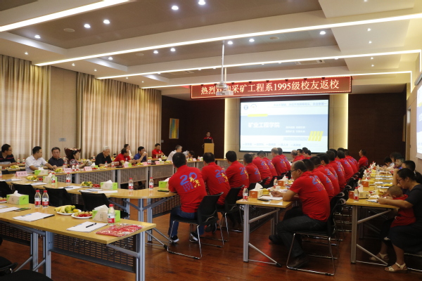 、师资队伍、人才培养、学科建设、科学研究、学术交流、面临困惑七个方面对学院近年的发展及现状做了介绍。原采矿工程系95级沈荣喜同学汇报了本次活动的筹备情况。江苏师范大学副校长、原矿业学院院长张农,矿业学院党委书记陈新忠,任课教师汪理全、窦林名、杜计平,辅导员徐黎华先后发言,充分肯定了同学们20年来取得的巨大事业成功,勉励同学们勿忘师恩,勿忘同学情,激励校友们积极进取、努力工作、为祖国建设贡献自己的力量。