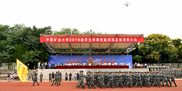 9月15日上午,中国矿业大学2019级新生军训总结表彰大会在东坡运动场举行。学校领导刘波、宋学锋、曹德欣、赵建岭、李强、付恒升、周国庆、卞正富、王增国、周福宝,承训部队首长、各学院主要负责人以及学生军训旅组成单位负责人出席了本次大会。