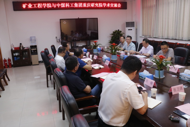 和中煤科工集团宣传片。座谈会上,徐彬院长介绍了中煤科工集团重庆研究院的基本情况,并感谢矿业大学长期以来为研究院所做的大量人才输入。科研、研究生副院长李学华介绍了学院科学研究现状、研究生培养和校外兼职导师聘任。矿业学院王旭锋教授介绍了在“井下管网式空间生产环境净化”领域的研究现状。胥奎副院长结合煤矿工人患有的肺尘病情况,就职业健康的研究现状和未来前景表达了个人看法。