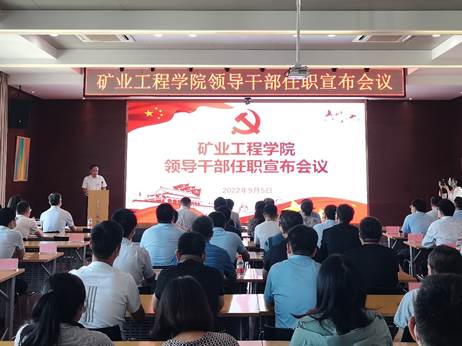9月5日下午,我院在矿业楼A604召开领导干部任职宣布会议。校党委书记刘波,校党委常委、组织部部长张万海,江苏省徐州技师学院院长、原学院党委书记陈新忠出席会议。我院党委书记闵涛、学院领导班子成员及全体教职工参加会议,会议由院长张吉雄主持。