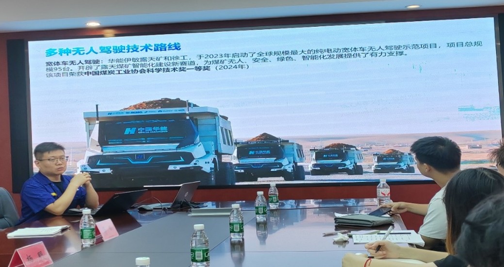 7月26日~30日,实习转入制造前沿,以“线下参访+线上授课”直击智能装备系统研发核心。线下参访环节,探访徐州华东机械有限公司、徐州徐工矿业机械有限公司,观摩重型装备生产线;走进华洋通信科技股份有限公司,学习矿山物联网与智慧矿山示范工程。线上授课化环节,宁夏天地奔牛集团有限公司冯景浦所长分享煤矿智能化建设与智能刮板输送装备发展现状,郑煤机郑州恒达智控科技股份有限公司崔科飞高工展望煤矿综采控制系统及智能化未来,山东充煤黑豹矿业装备有限公司李立辉工程师解析智能掘进系统技术及先进装备。