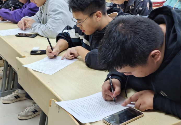各班级采取“线上结合线下,广泛结合专题”的形式,创新宣传方式、加大反诈力度,开展形式多样的主题教育活动,如主题班会、问卷调研、案例分析、防诈技巧分享等。在主题班会上,班级团支书以案普法筑牢校园“防火墙”,以趣味互动编织安全“防护网”,在21级同学们的思想深处建立“过滤网”,增强甄别电信网络诈骗的能力,对一些网络链接、电话及不明身份的人提高警惕,做到“不参与、不转账、不听信”,谨防受骗。