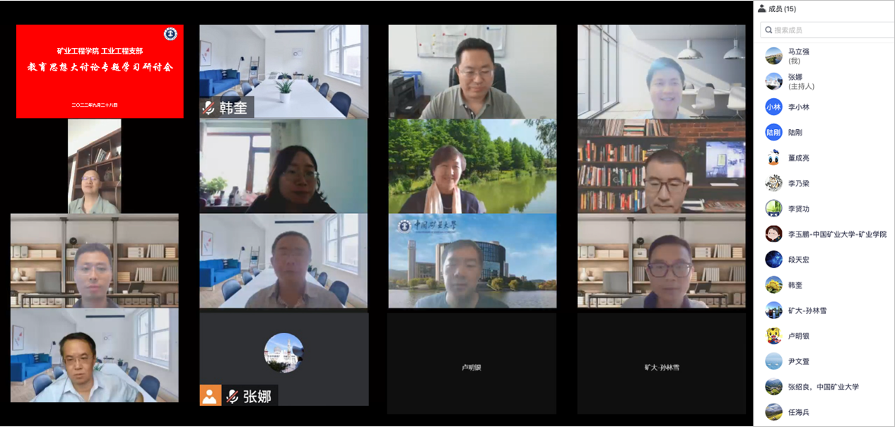 中国矿业大学2022年教育思想大讨论是对学校办学历史的优良传统和精神文化的充分继承。工业工程支部根据学院开展教育思想大讨论的工作安排,依据《“深化教育综合改革,构建高质量教育体系”中国矿业大学2022年教育思想大讨论实施方案》,积极组织全体教师深入学习相关文件资料、制定学习讨论计划。本次专题学习研讨会对工业工程专业人才培养进行了充分讨论,坚定了矿业特色发展的方向,从实习实践、协同育人、培养方案改革等多方面给出具体意见和建议,为基础宽厚、知识面广、适应力强的高质量人才培养提供了有效保障。